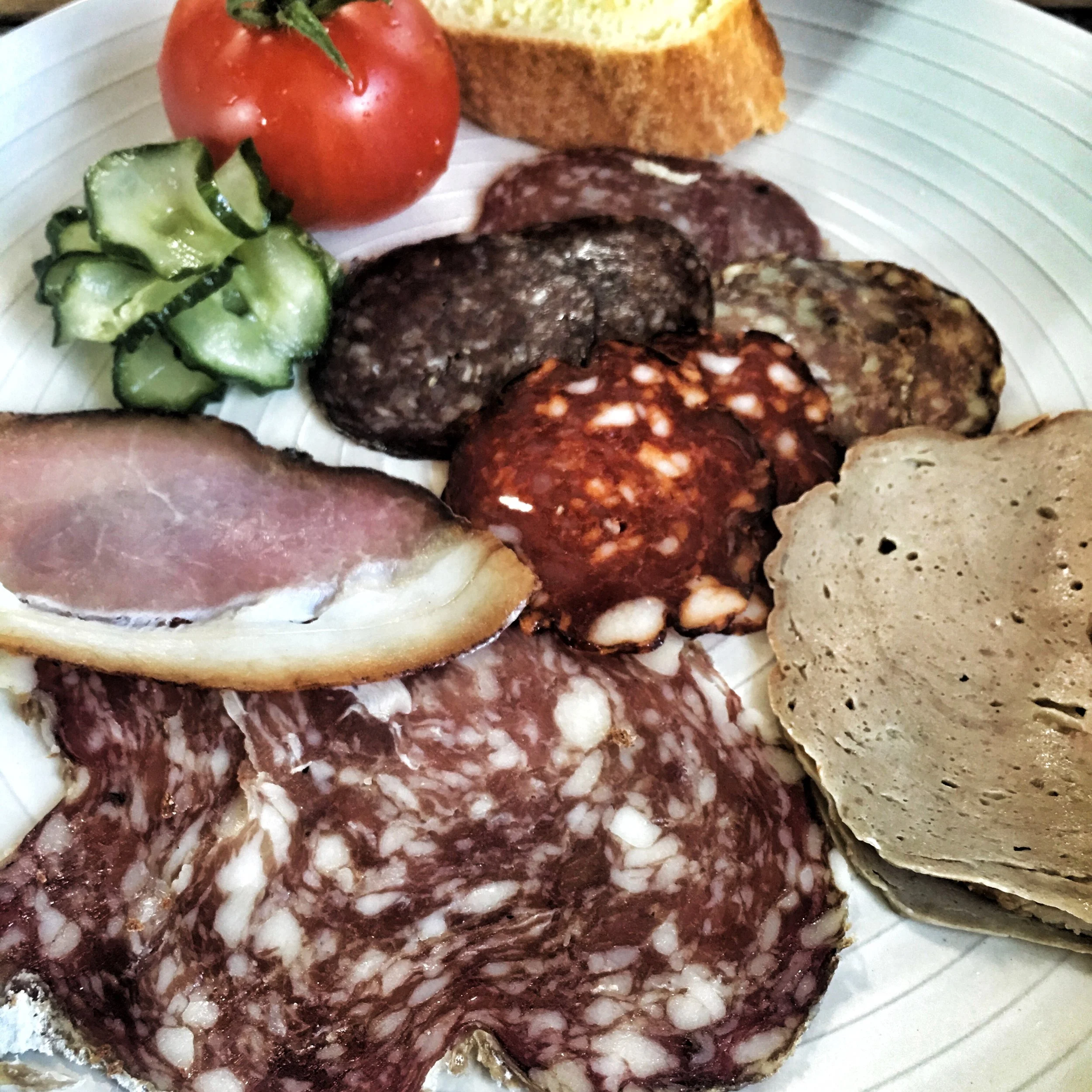 Typical butchers breakfast: salami, lomo, and leberwurst